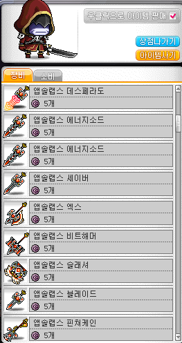 | 앱솔랩스 폭검 (장검) | 106 | 82 | 63 | 46 | 31 |