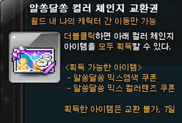 9일 차 보상과 비슷하게 코디 실패 복구나 부캐캐릭 코디에 도움이 될 것 같습니다.