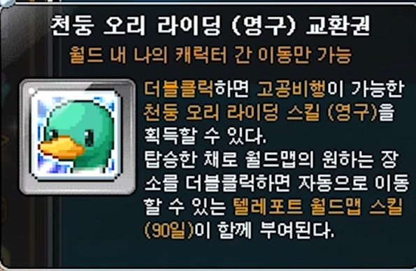 이 라이딩은 이쁘다기 보단 아래 보이듯이 텔레포트 월드맵 스킬이 중요하기 때문에 받아주시는 것이 좋습니다.
